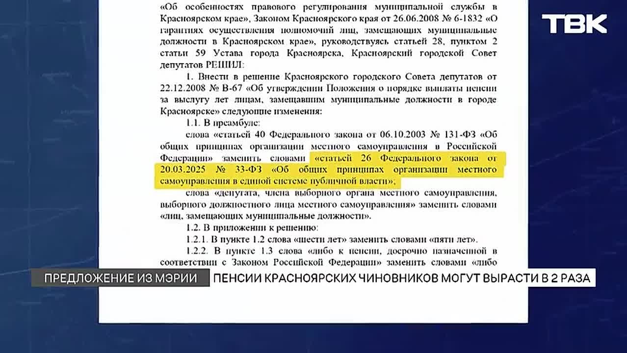 Красноярскому мэру и представителям Городского совета хотят повысить пенсии. С таким предложением выступил врио главы города Роман Одинцов. Проект уже внесли на рассмотрение депутатам.
