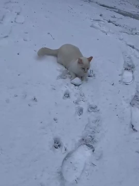 Ирина Мезенова сняла, как питомец играл во дворе и катал снежный шар. Хвостатый собрал небольшой снежок и не остановился на этом. «Снеговика лепит», — шутят коллеги.