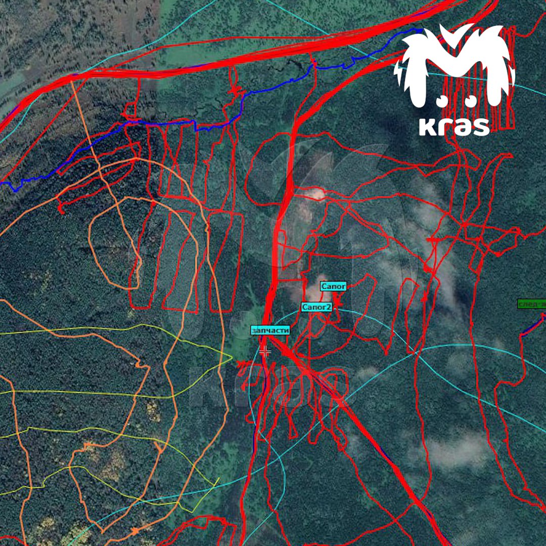 Жёлтые — места, где летали квадрокоптеры, оранжевые исследовали кинологи. И всё это только за вчерашний день. Геометками выделяют всё, что привлекает внимание: следы медведей, взрослых и детей, места, где слышали лай собаки, крики или даже отклики на зов. Отдельно выделен тот самый "костёр последней надежды", где могли греться Сергей, Ирина и их дочь.