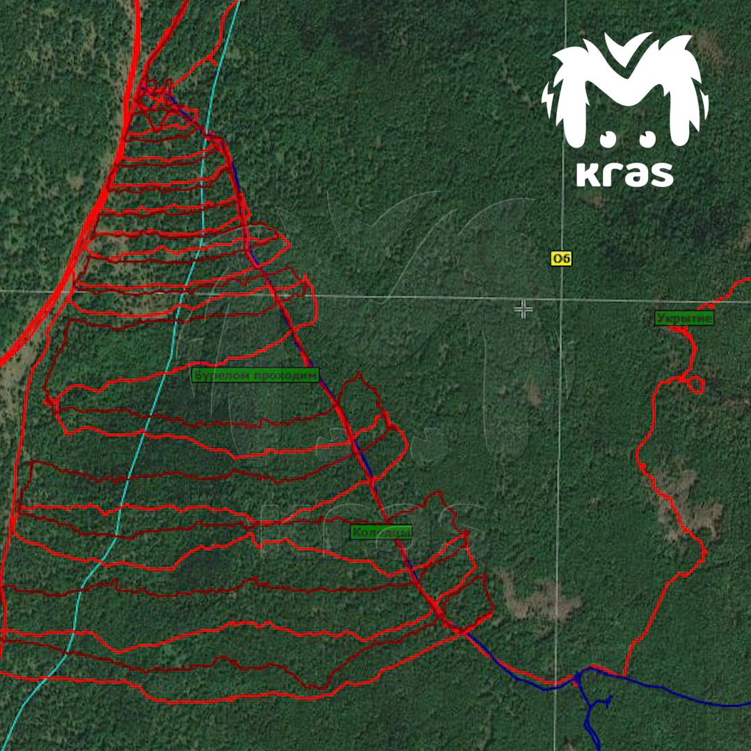 Так выглядят карты поисков семьи Усольцевых, пропавших в Красноярском крае. Красные линии — маршруты, пройденные людьми.