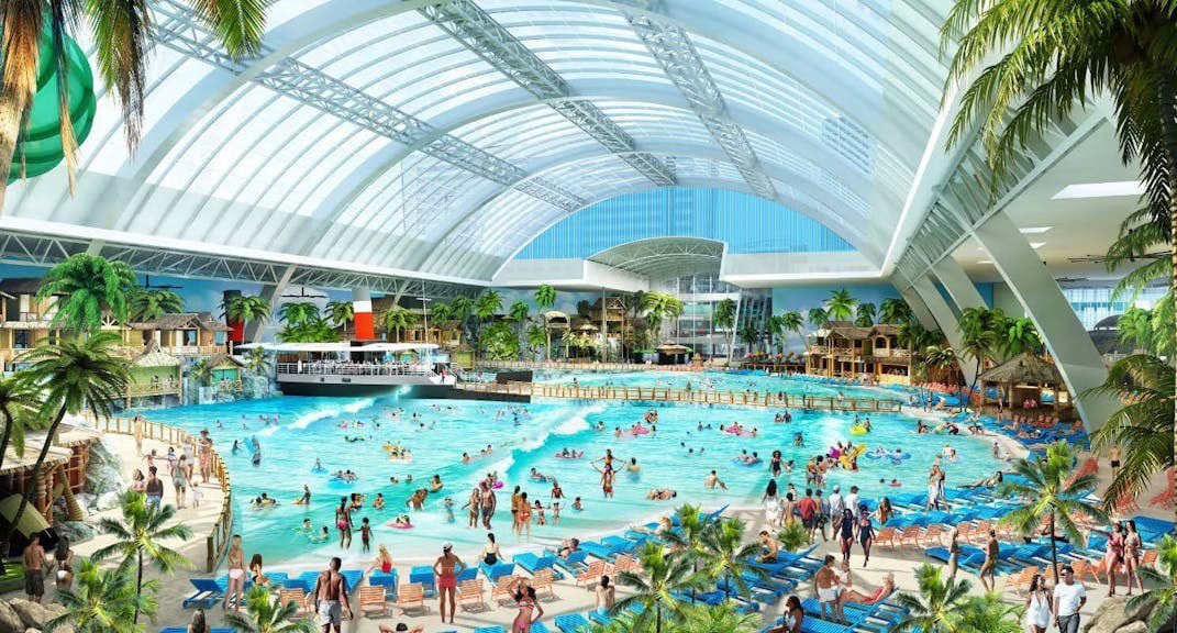 Под куполом разместятся водная зона и пляж, детские и концертная площадка, аттракционы. Одновременно комплекс сможет принять до 2 тысяч гостей.