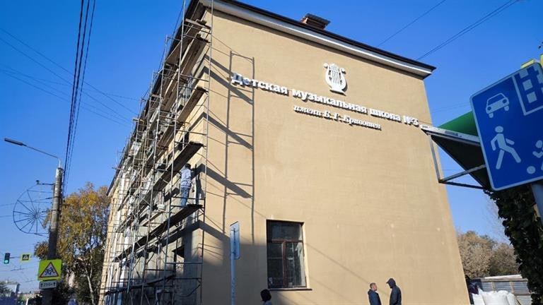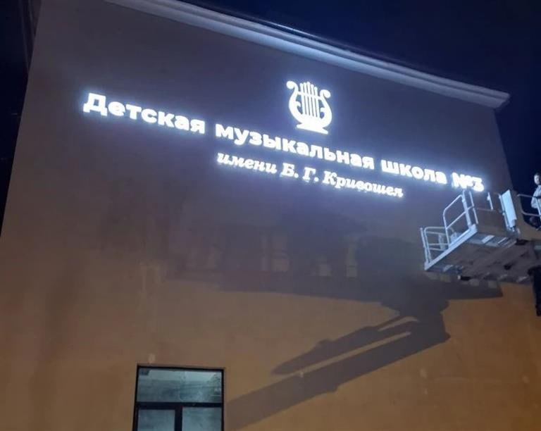 На фасаде ДМШ №3 им. Б.Г. Кривошея установили новую подсвеченную вывеску. Внутри продолжается капремонт: монтируют отопление, укладывают керамогранит, готовят новые перила. Уже обновили крышу, сети, окна и потолки.