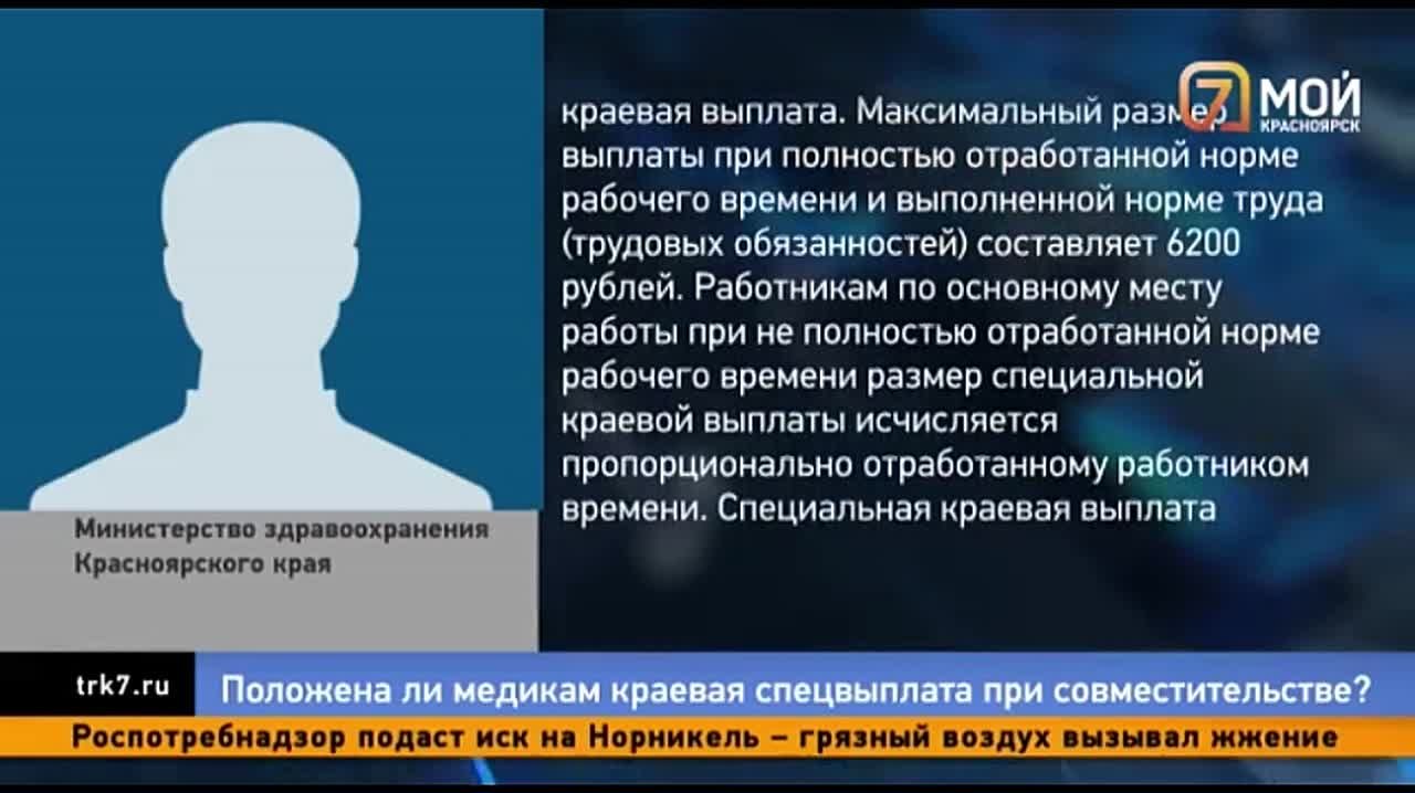 В Красноярском крае каждому медработнику положена специальная региональная выплата к окладу — 6 200 рублей.