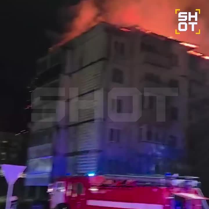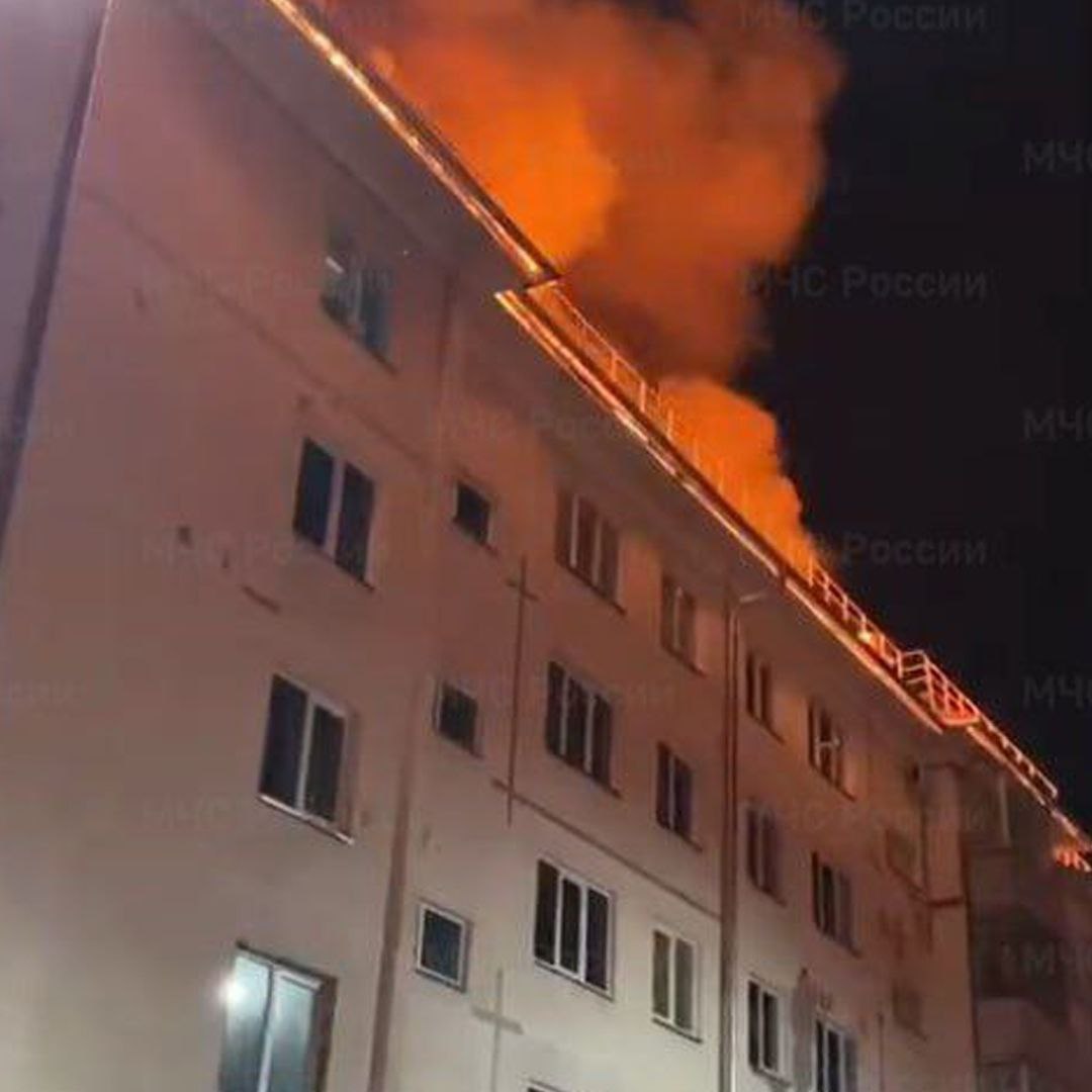 Как рассказали SHOT местные жители, пожар начался около 2 ночи по местному времени в доме на улице 9-й Пятилетки. Пламя быстро охватило всю кровлю здания, жители начали экстренно эвакуироваться.