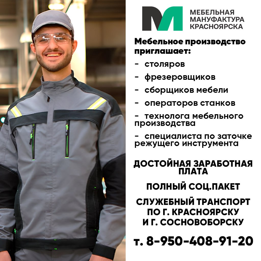 Компания "Мебельная мануфактура Красноярска" приглашает на работу :