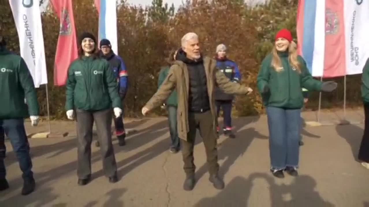 Олег Михайлович станцевал со специалистами СГК под свою песню. А затем все вместе посадили саженцы на аллее возле Красноярской ТЭЦ-3.