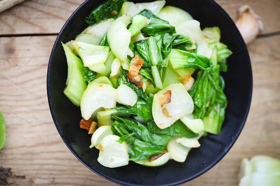 Начните с подготовки бок-чой. Вырежьте его на небольшие кусочки, отделив белую часть от зеленой. Зеленую часть добавьте в сковороду в самом конце, чтобы она сохранила свой яркий цвет и хрусткость.Далее нарежьте грудинку на тонкие полоски. Измельчите чеснок, это придаст блюду особый аромат.Разогрейте сковороду на среднем огне и добавьте грудинку, обжаривая ее до золотистого цвета, пока не вытопится жир. Затем бросьте в сковороду чеснок и продолжайте жарить до появления приятного аромата.Увеличьте огонь и добавьте белую часть бок-чой. Обжаривайте несколько минут, пока она не станет слегка мягкой.После этого добавьте зеленую часть, посолите и продолжайте готовить еще около 30 секунд. Как только овощи будут готовы, снимите сковороду с огня.В результате получается красивое и аппетитное блюдо, которое не только радует глаз, но и восхищает вкусом. Подавайте стир-фрай с бок-чой горячим, и наслаждайтесь каждым укусом!