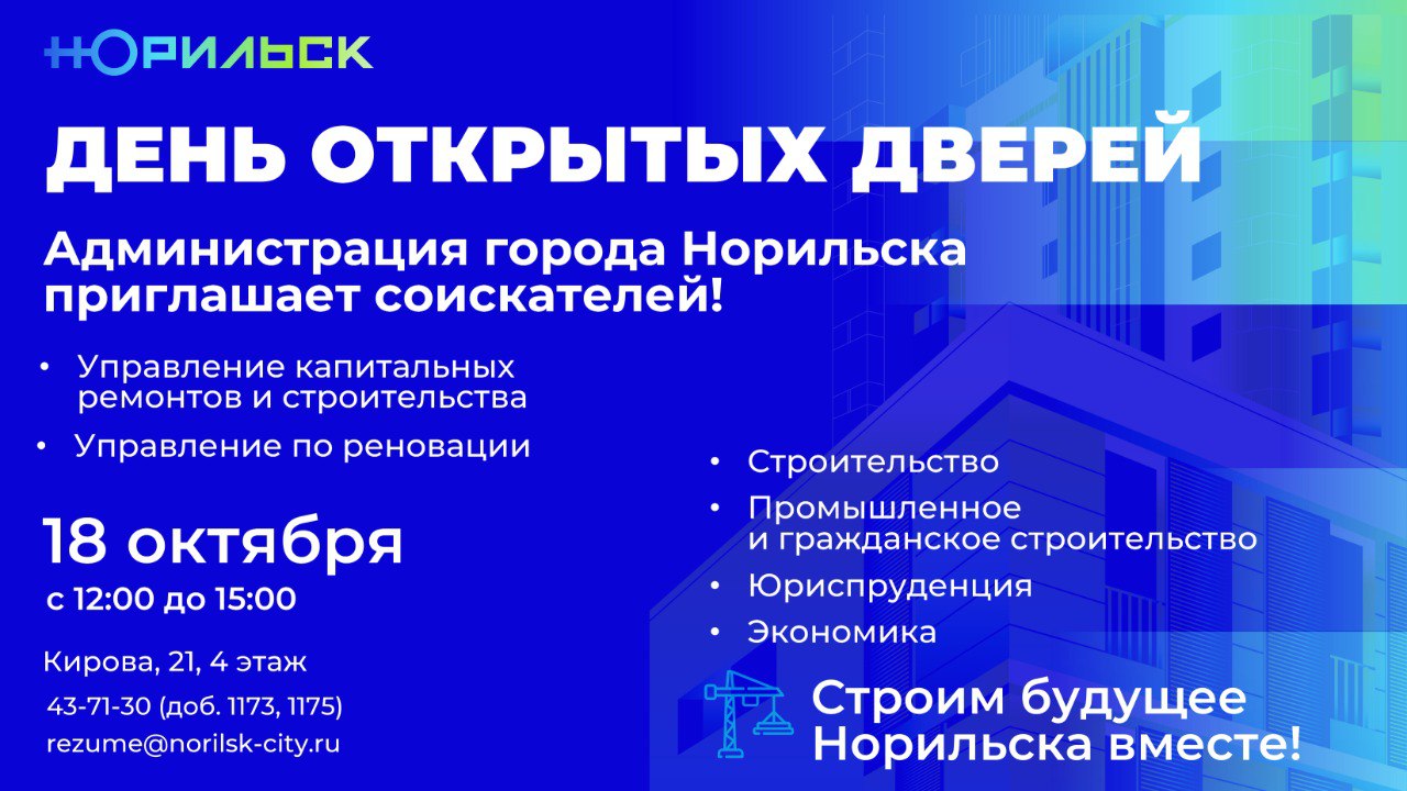 Администрация города Норильска приглашает специалистов в Управление по реновации и МКУ «Управление капитальных ремонтов и строительства»