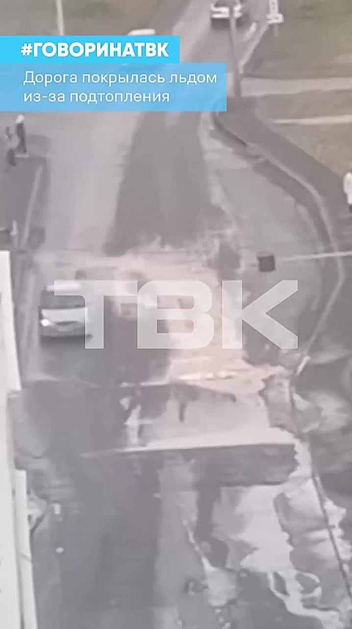 Подписчик ТВК рассказал, что вода на проезжую часть поступает из колодца. Сейчас из-за минусовых температур по ночам все замерзло, на дороге – лед.
