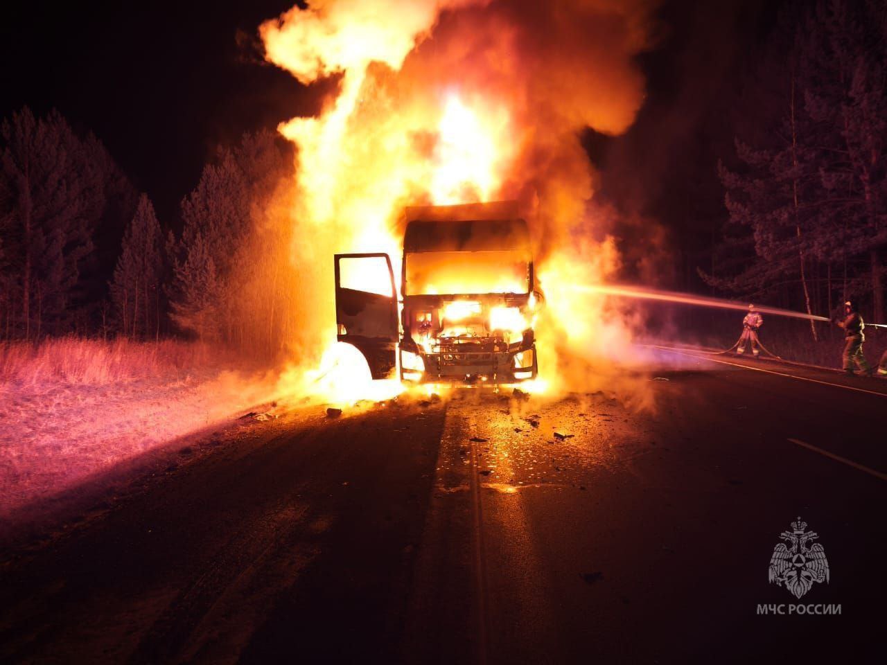 Грузовик с одеждой сгорел на федеральной трассе «Сибирь» в Красноярском крае.