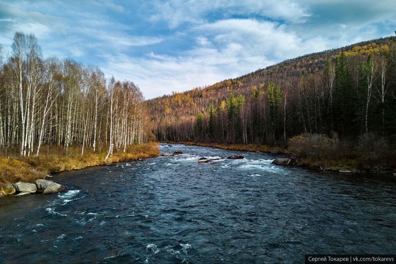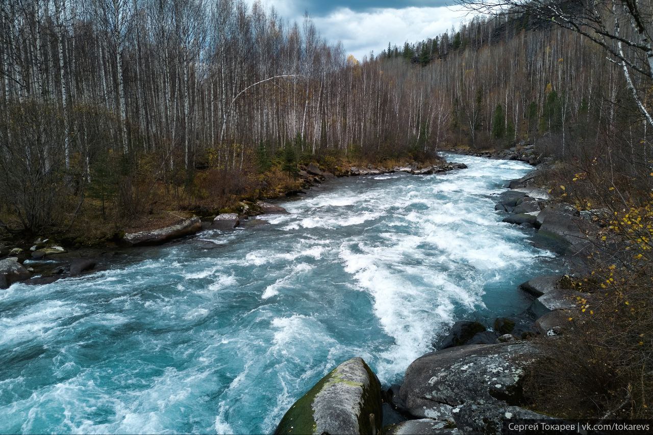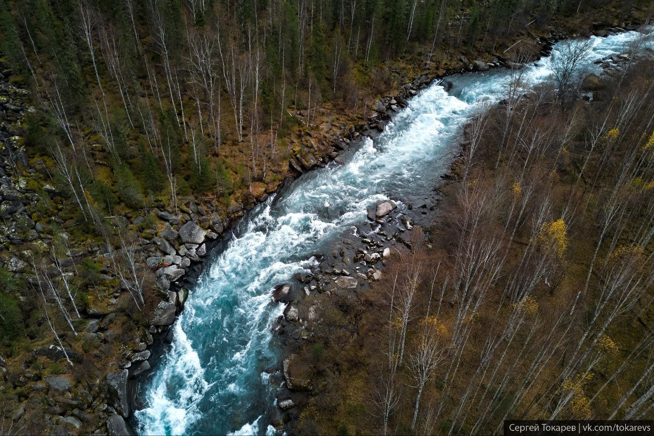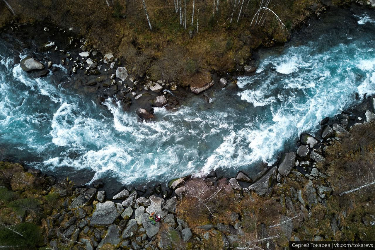 «Вряд ли вы где-то еще сможете увидеть такую бурную Ману.Протяженность порога 2 км, состоит он из трех ступеней. По сложности имеет 4-5 категорию из 6. Русло очень узкое, усыпано большими камнями», - пишет автор фото Сергей Токарев.