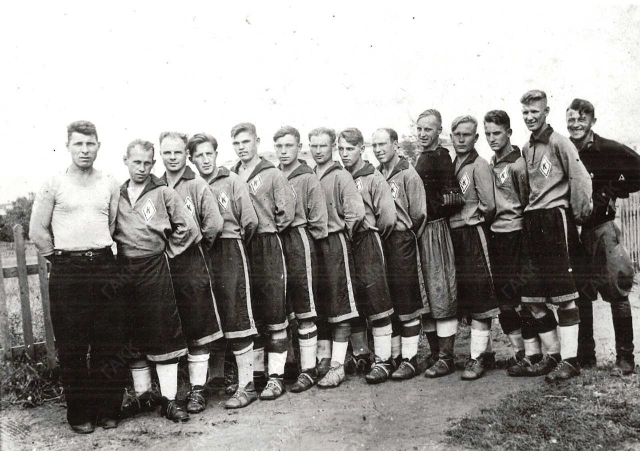 2. Сборная г. Красноярска по футболу на Спартакиаде Сибири и Дальнего Востока в Омске. Пятый слева – Николай Михайлович Мартынов, 30 августа 1945 г.