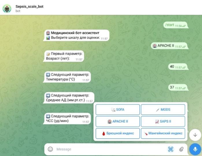 Бот прост в использовании: медперсонал вводит клинические и лабораторные показатели пациента, а программа автоматически анализирует данные и вычисляет риски. Это ускоряет оценку состояния больного при поступлении в реанимацию, во время динамического наблюдения или перед операцией.