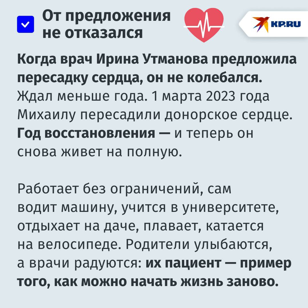 Но судьба подарила мужчине шанс — трансплантацию донорского сердца… Прошло более двух лет, теперь даже доктора удивляются, глядя на его фото в соцсетях: то на море поехал, то на гору со сноубордом полез. Подробнее — в наших карточках!