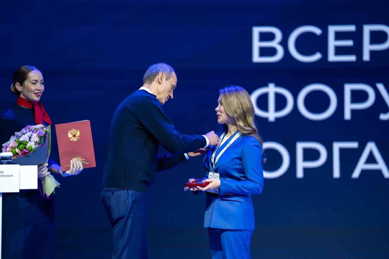 17 октября на пленарной сессии заместитель председателя правительства Российской Федерации — руководитель аппарата правительства Российской Федерации Дмитрий Григоренко наградил Светлану Алексееву медалью за заслуги в обеспечении деятельности правительства России.