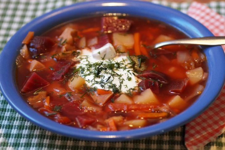 Несмотря на то, что в нем отсутствует привычная многим картошка и, конечно же, мясо, блюдо получается наваристым и густым, а чтобы борщ получился сытным, повара предлагают заменить картофель фасолью.