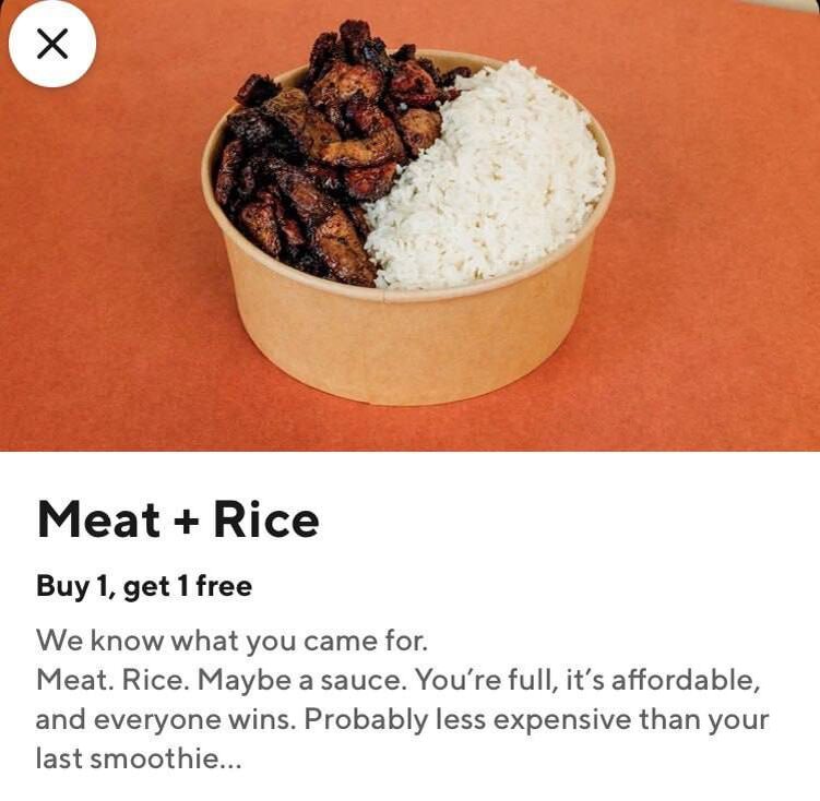 Меню заведения под названием «Мясо + рис» состоит всего из двух пунктов: