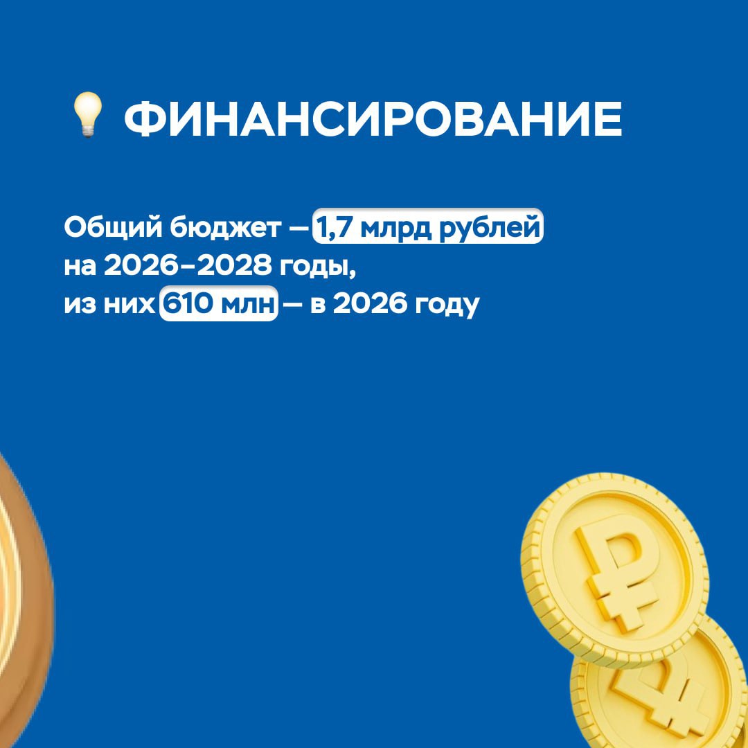 Общий объём финансирования составит более 1,7 млрд рублей за три года, в том числе в 2026 году планируется направить почти 610 млн рублей.