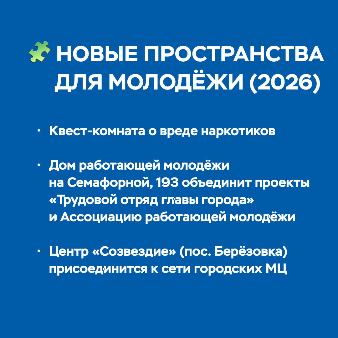 продолжится совершенствование инфраструктуры и создание условий для патриотического воспитания молодёжи.