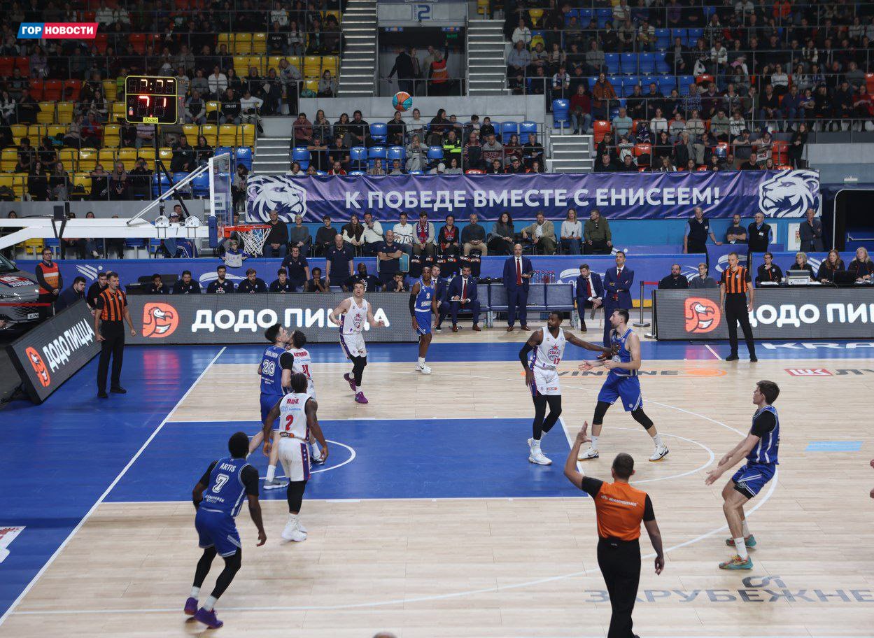 Билеты на игру красноярцы раскупили заранее — болельщики увидели яркий матч. Счёт к первой половине 35:40. Перед заключительным этапом на табло 55:69.