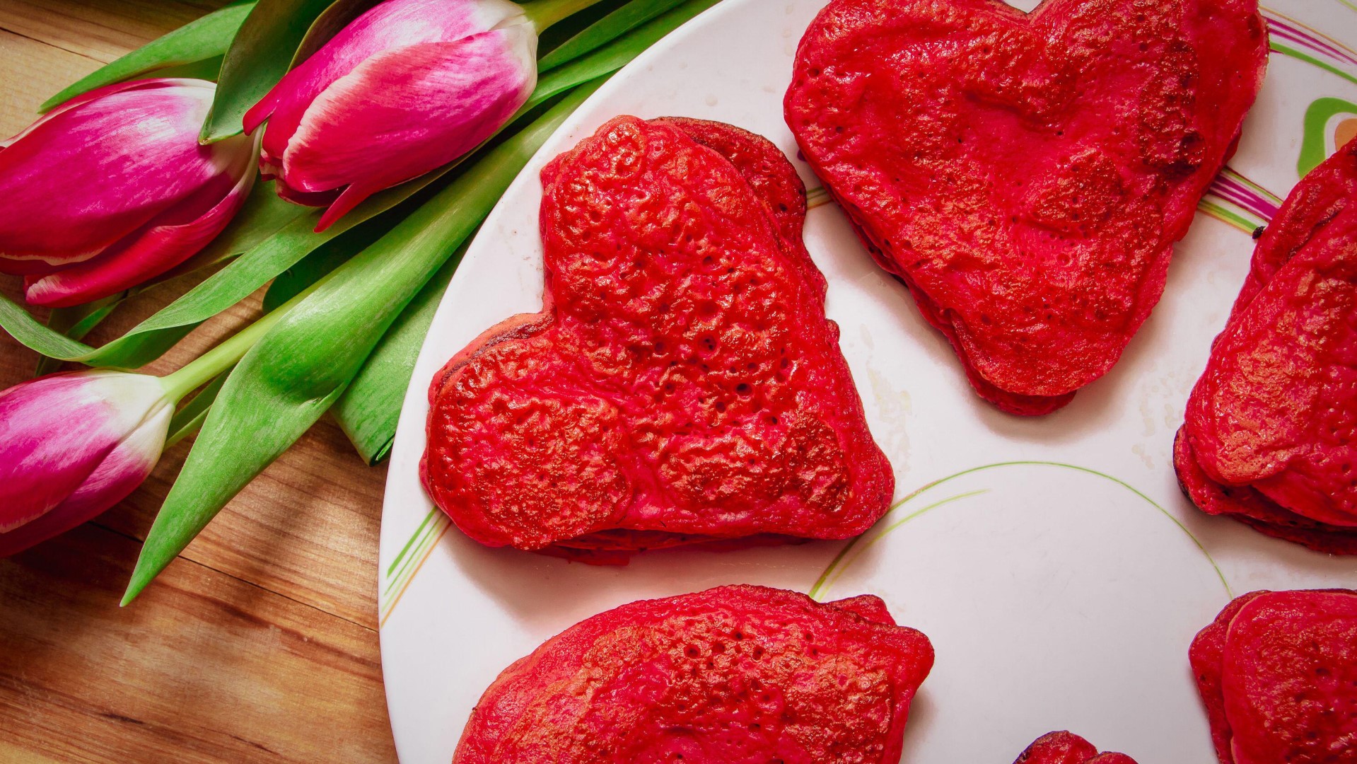 В День влюбленных хочется порадовать любимых людей чем-то праздничным и необычным. Красные блинчики в форме сердечек заменят порядком поднадоевшие открытки.