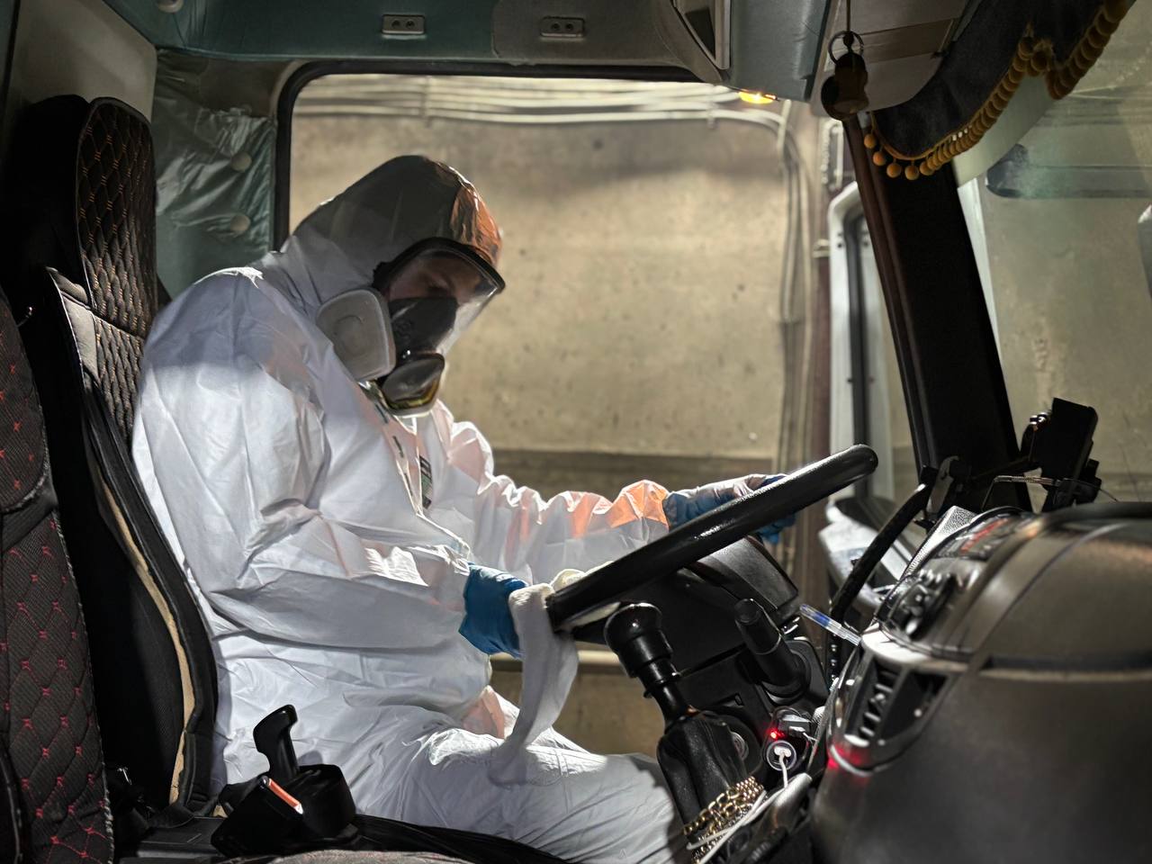 Дезинфекция техники проводится раз в 10 дней, согласно санитарным нормам. Для обработки используются специальное оборудование и профессиональные дезинфицирующие средства.