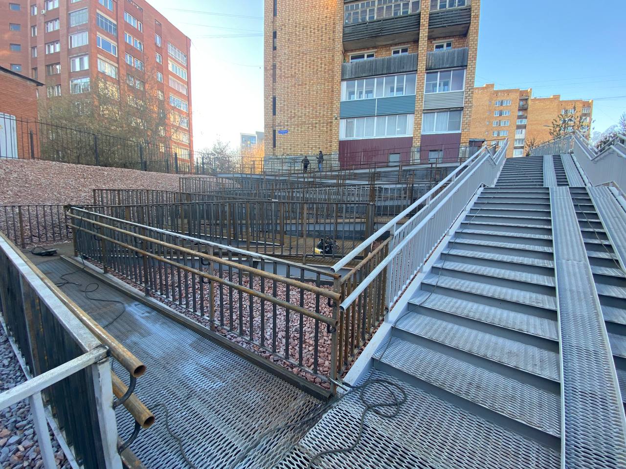 Сейчас подрядчик устанавливает ограждения и поручни. К концу месяца объект будет полностью готов, но пользоваться новой лестницей и пандусом можно уже сейчас.