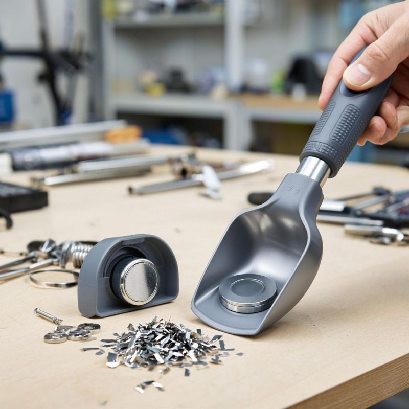 Магнитный совок состоит из трёх основных элементов: мощного магнита, прочной основы и удобной ручки. Эффективность такого устройства зависит от качества магнита. Наилучшие результаты обеспечивают неодимовые магниты, которые обладают отличной силой сцепления при небольших размерах. Благодаря этому, они могут надежно удерживать даже самые мелкие металлические частицы.