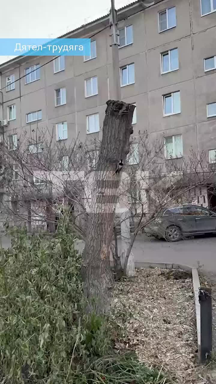 даже малый пестрый дятел трудится на благо двора