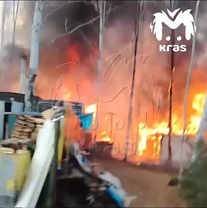 Огонь охватил несколько зданий в лесу и перекидывается на деревья. Отдыхающие сбежали в рощу, МЧС на месте.