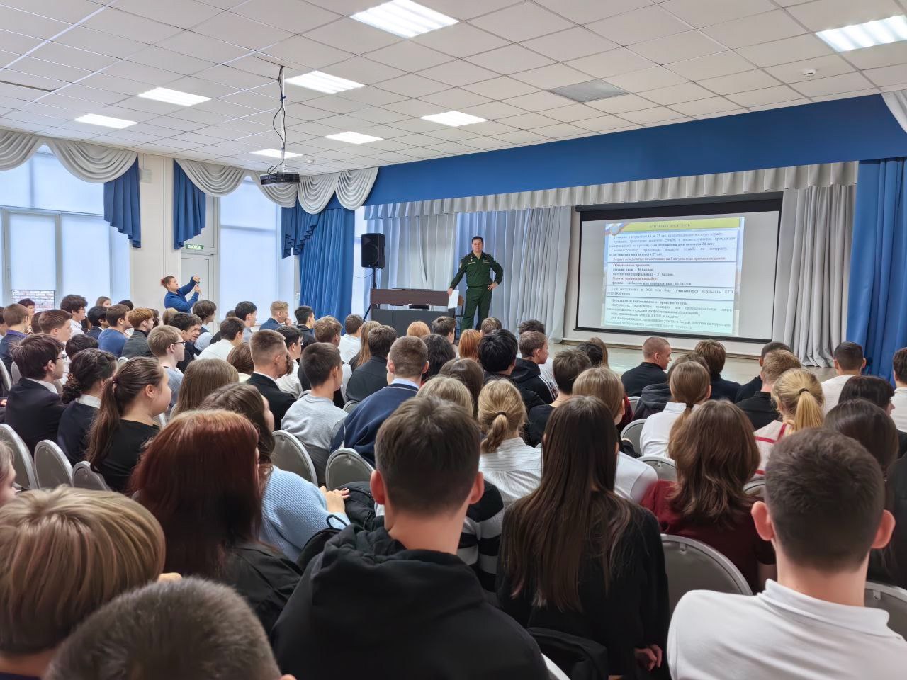 О том, что и свою судьбу можно связать с военной профессией, старшеклассникам школы на этой неделе рассказали представители Военно-инженерного института «Университета Решетнёва» и Военной академии воздушно-космической обороны имени Маршала Советского Союза Г.К. Жукова. Школьников интересовали не только экзамены для поступления, но и личные качества, необходимые для успешной службы, а также долгосрочные карьерные перспективы.