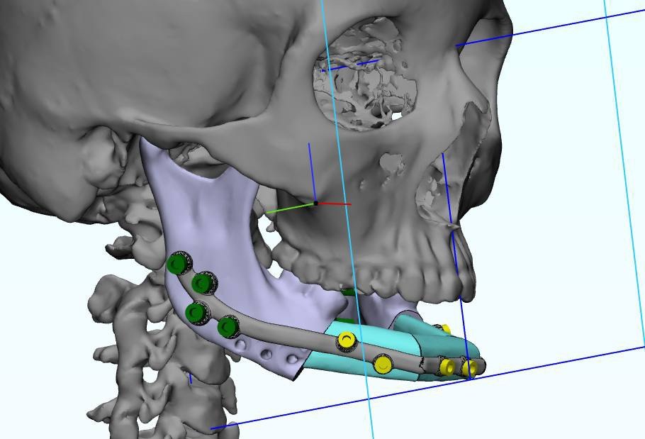 Через два года пациентке стало трудно жевать, у нее не было зубов. Из-за пластины было сложно предложить варианты реабилитации. Тогда медики решились на сложную операцию, они заменили дефект челюсти малоберцовым костным лоскутом. Хирурги работали по индивидуальным шаблонам, которые заранее разработали и распечатали на 3D-принтере. Это нужно было для того, чтобы все идеально подошло пациентке.
