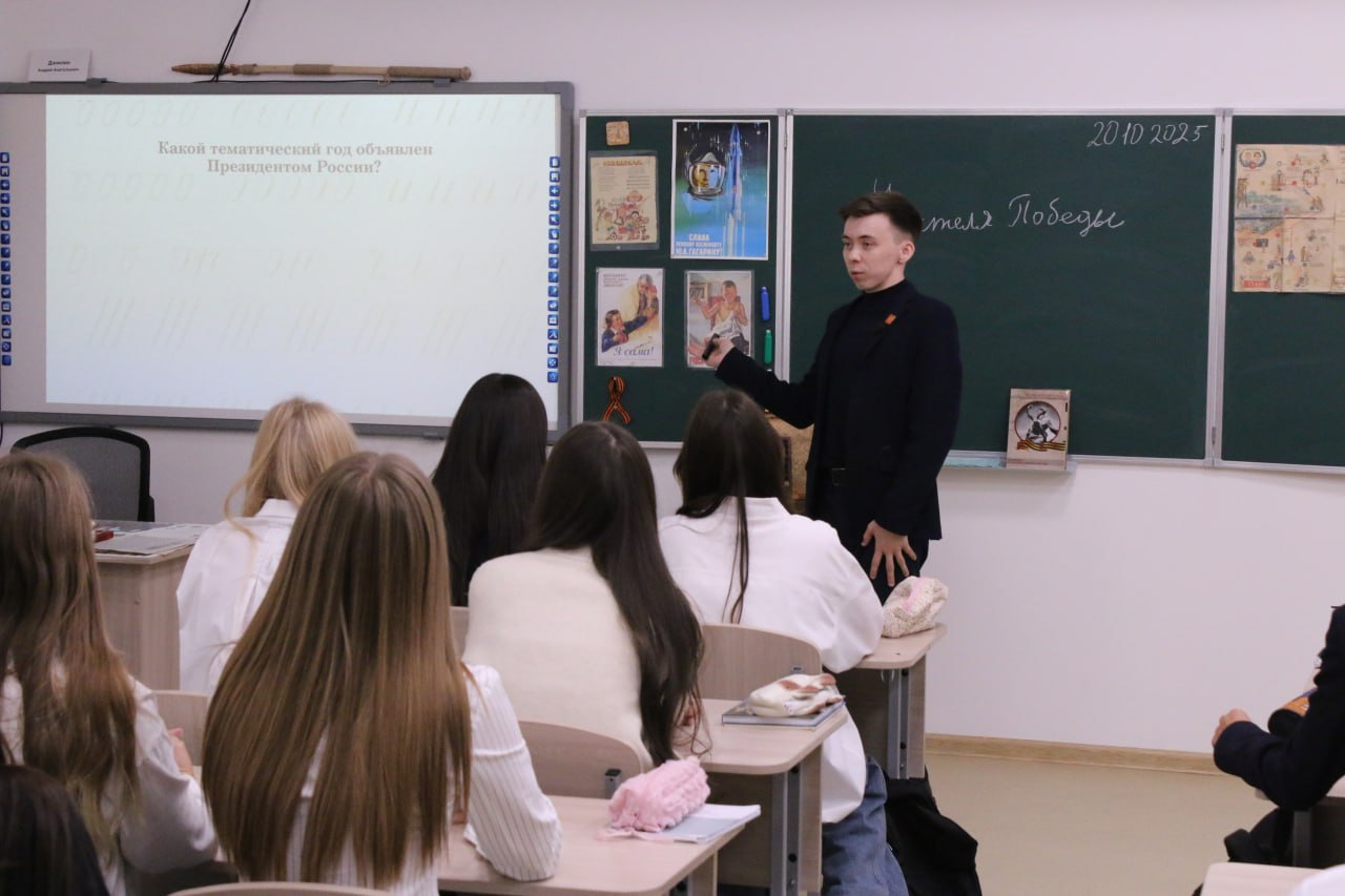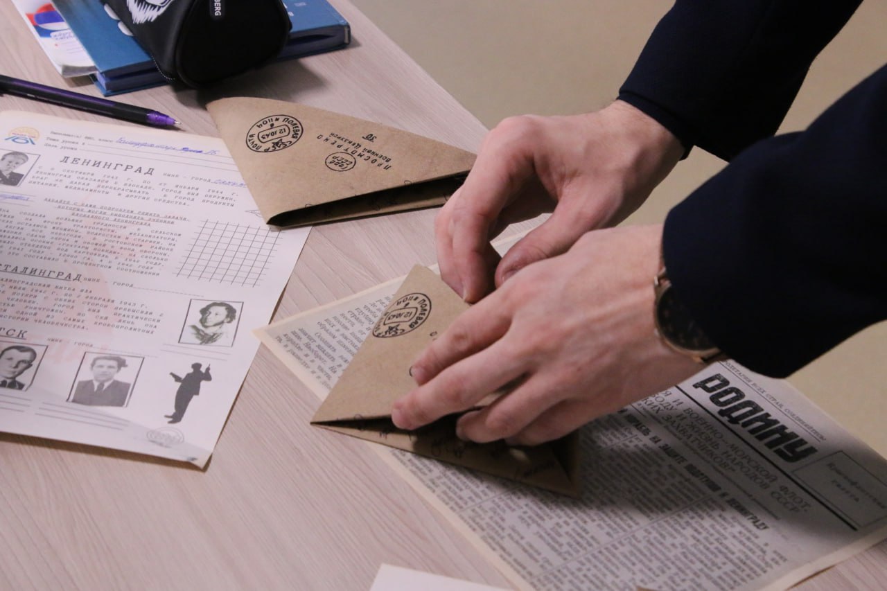 Учитель истории школы №161 Красноярска Андрей Данилин провёл интерактивное занятие для восьмиклассников. Ребята ознакомились с историями педагогов из блокадного Ленинграда, разрушенного Сталинграда и послевоенного Гжатска.