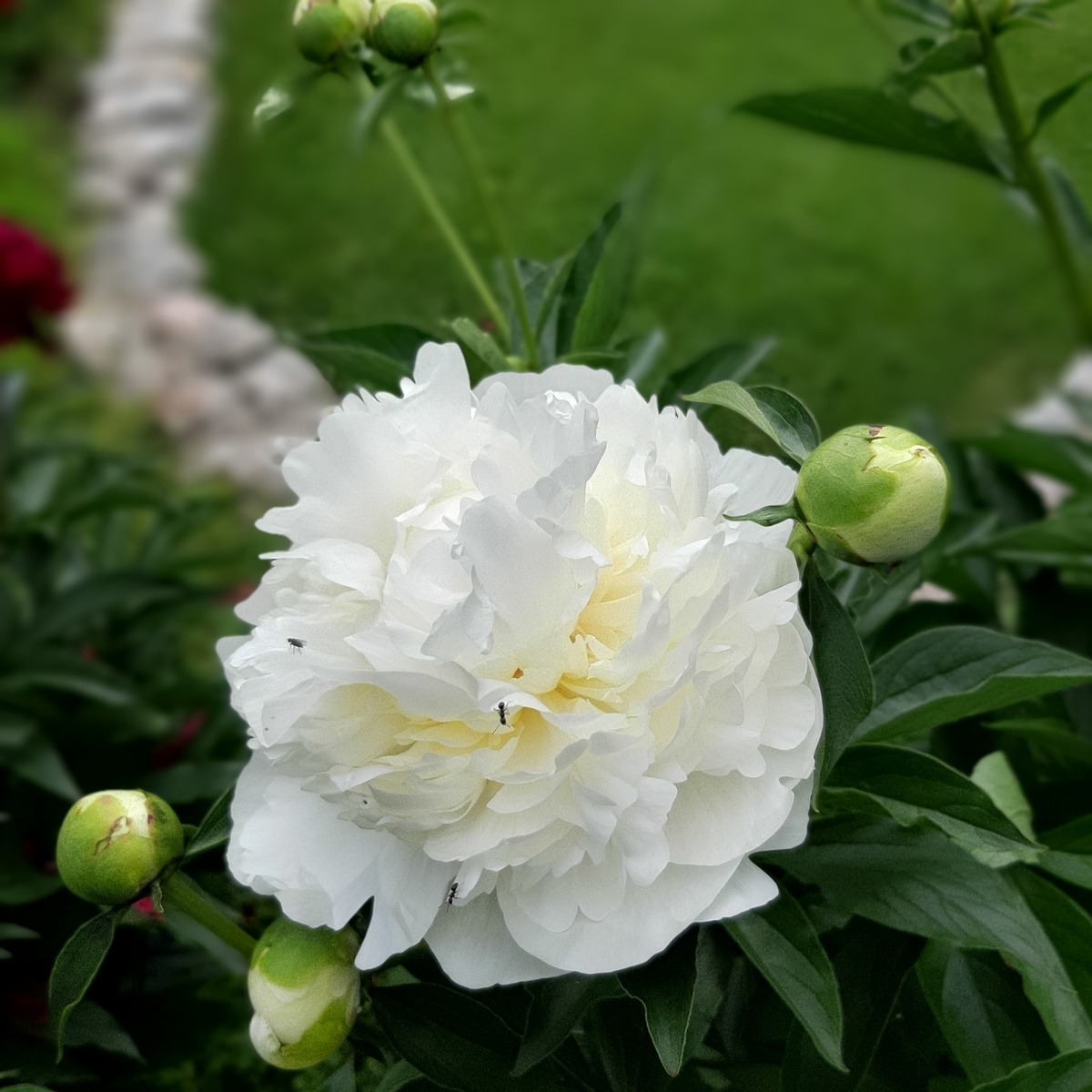 Пионы, как и всегда, заняли почетное место в летнем саду, радуя глаз цветением. Более того, некоторые сорта показали себя особенно эффектно. Молочноцветковый пион 'Дюшес де Немур', выведенный в 1856 году во Франции, является ярким представителем исторических сортов. Его белоснежные цветы с лимонным оттенком в центре и нежным ландышевым ароматом не оставляют равнодушными.
