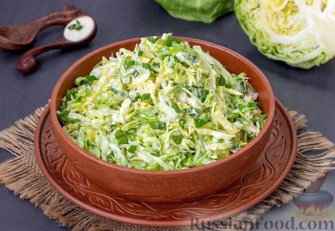 Этот салат — отличное начало весеннего ужина. Нежная молодая капуста в сочетании со сметаной и зелёным луком создаст яркое сочетание вкусов. Простота приготовления делает его доступным для каждого, кто хочет быстро накрыть стол.
