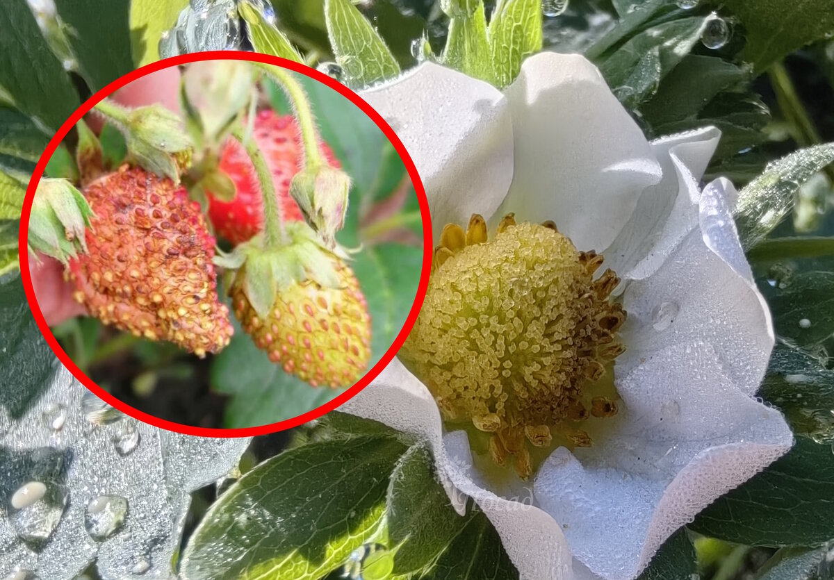 Признаки его наличия лучше всего заметны в период цветения клубники. При легком постукивании по цветкам насекомые начинают активно передвигаться, и их можно увидеть на белоснежных лепестках. Трипсы – это маленькие насекомые, ростом до 1 мм, черные или рыжие, и они любят прятаться в чашелистиках. Но чаще садоводы замечают только последствия их работы: ягоды, которые вместо аппетитного вида становятся сухими и блеклыми, словно покрываются бронзовым налётом. Такие плоды не только выглядят непривлекательно, но и становятся чрезмерно сладкими, напоминая изюм.