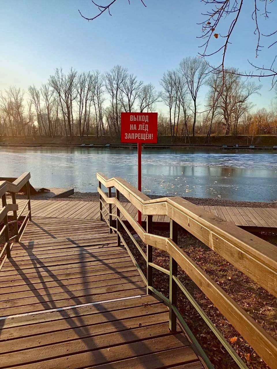 Знаки «купание запрещено» меняют на информацию о запрете выхода на лёд на озёрах Татышев-парка и городском пляже. Всего таких табличек будет 41.