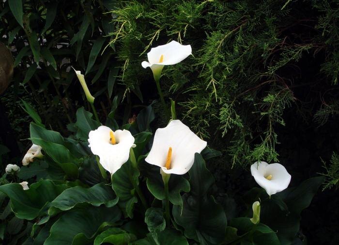 - Каллы: Клубневые сорта калл требуют особого ухода. Их стоит выкопать и обработать: очистить от земли и при необходимости подрезать корни. Хранить клубни лучше в влажном грунте или песке при оптимальной температуре.