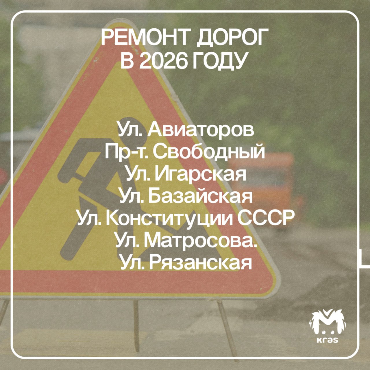 Эти улицы планируют отремонтировать в Красноярске в 2026-м.