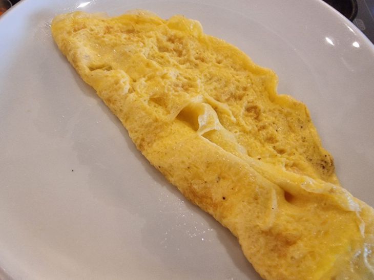 В качестве начинки для такого омлета могут выступать зелень, овощи или вегетарианский сыр.
