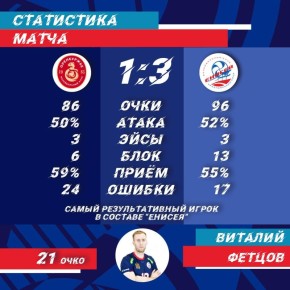 В воскресенье, 2 ноября, в четвертом туре Суперлиги красноярцы обыграли «Оренбуржье» со счётом 3:1 (25:19, 20:25, 26:24, 25:18).Самым результативным игроком «Енисея» в этот раз стал Виталий Фетцов. Он набрал 21 очко.Следующий матч пройдёт в субботу, 8...