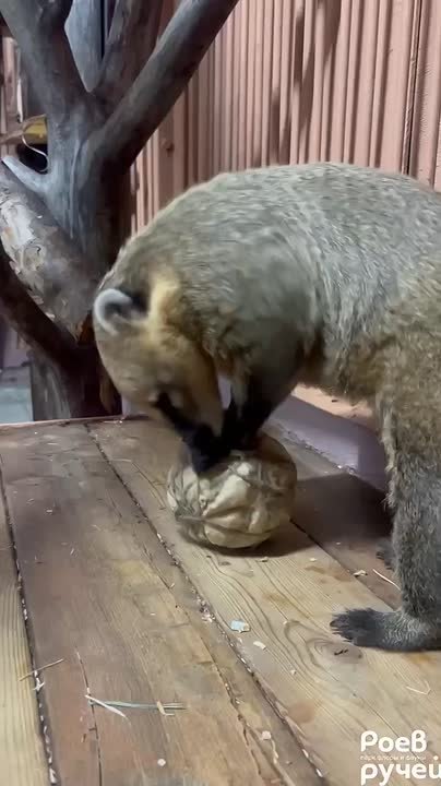 Если мы представим, что у носухи в руках кочан капусты, то можно будет подумать, что она завтракает.