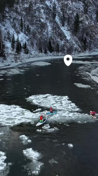 В Красноярске группа любителей активного отдыха устроила зимний заплыв на сапбордах по реке Мана