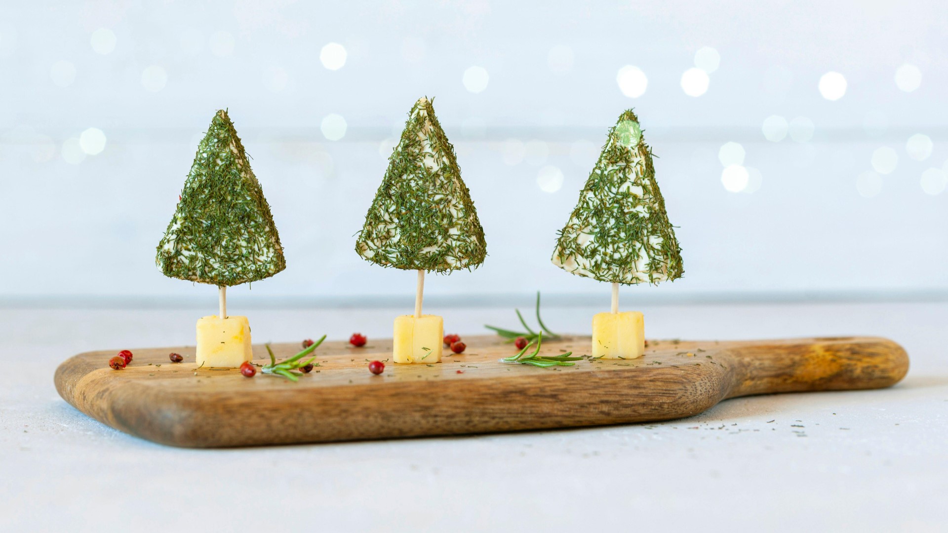 Нарежьте твердый сыр на крупные кубики. Измельчите укроп и смешайте с перцем. Далее распакуйте сырки и обваляйте в зелени. Теперь приступайте к сборке канапе.