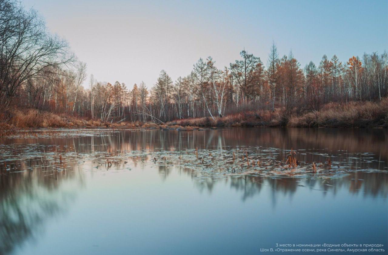 3место: Вадим Шох из пгт Талакан (Амурская область) за фотографию отражения осени в реке Синель.