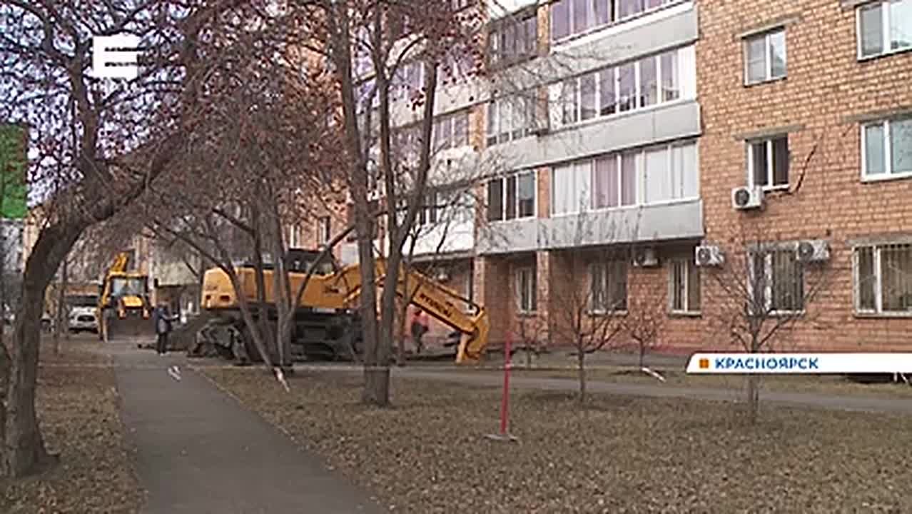 Асфальт у девятиэтажки на Бограда в Красноярске мог просесть из-за порыва трубы
