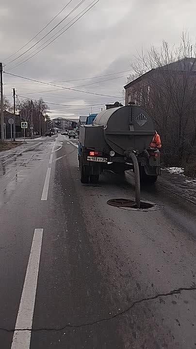 Здравствуйте, на ул. Октябрьская подъехала машина с бочкой и начала сливать не знаю что, но воздух испортила. Когда я подошла, водитель сказал: «Зачем снимаете?».