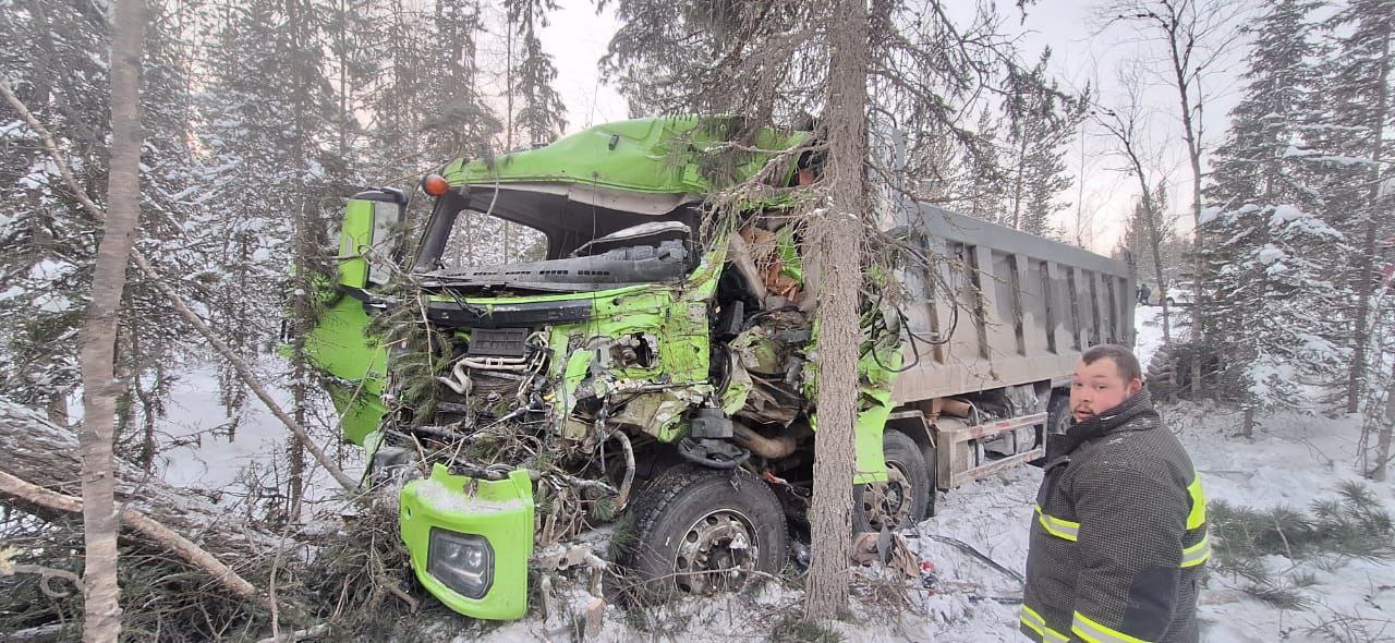 Под Северо-Енисейском в жуткой аварии с двумя грузовиками на заснеженной трассе погиб один из водителей
