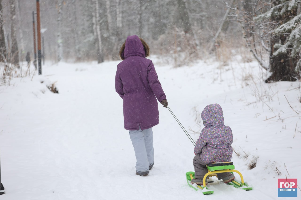 Горожане отправились наслаждаться зимними развлечениями: гулять по заснеженным дорожкам, вдыхать запах зимнего леса и кататься на санках.