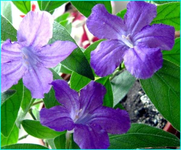 - Руэллия длиннолистная: отличается длинными узкими листьями и крупными светло-фиолетовыми цветами. Это растение хорошо растёт в местах с рассеянным светом.